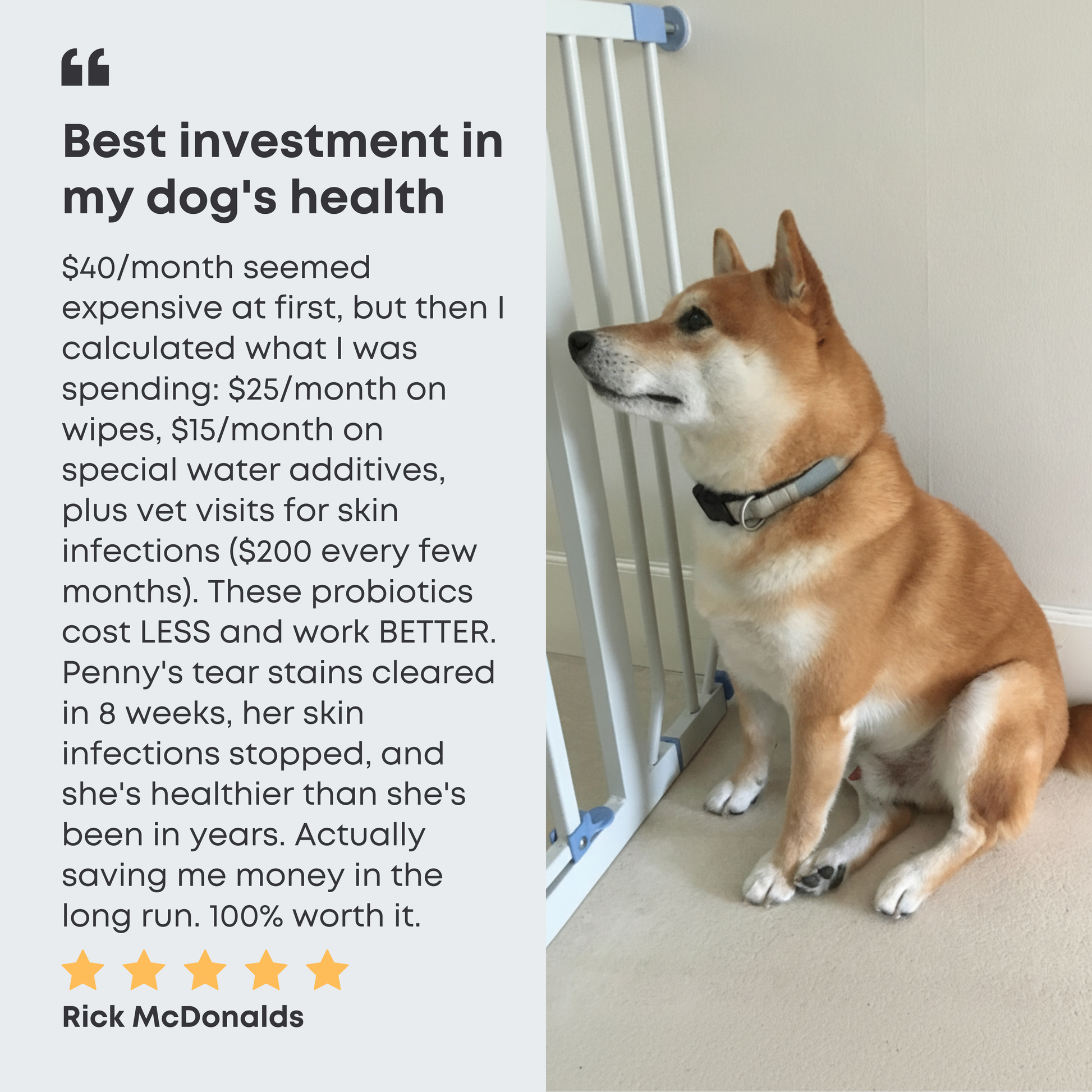 Result: Your dog's tears stains clear, their organs + gut stay protected, and they live a longer, healthier life.