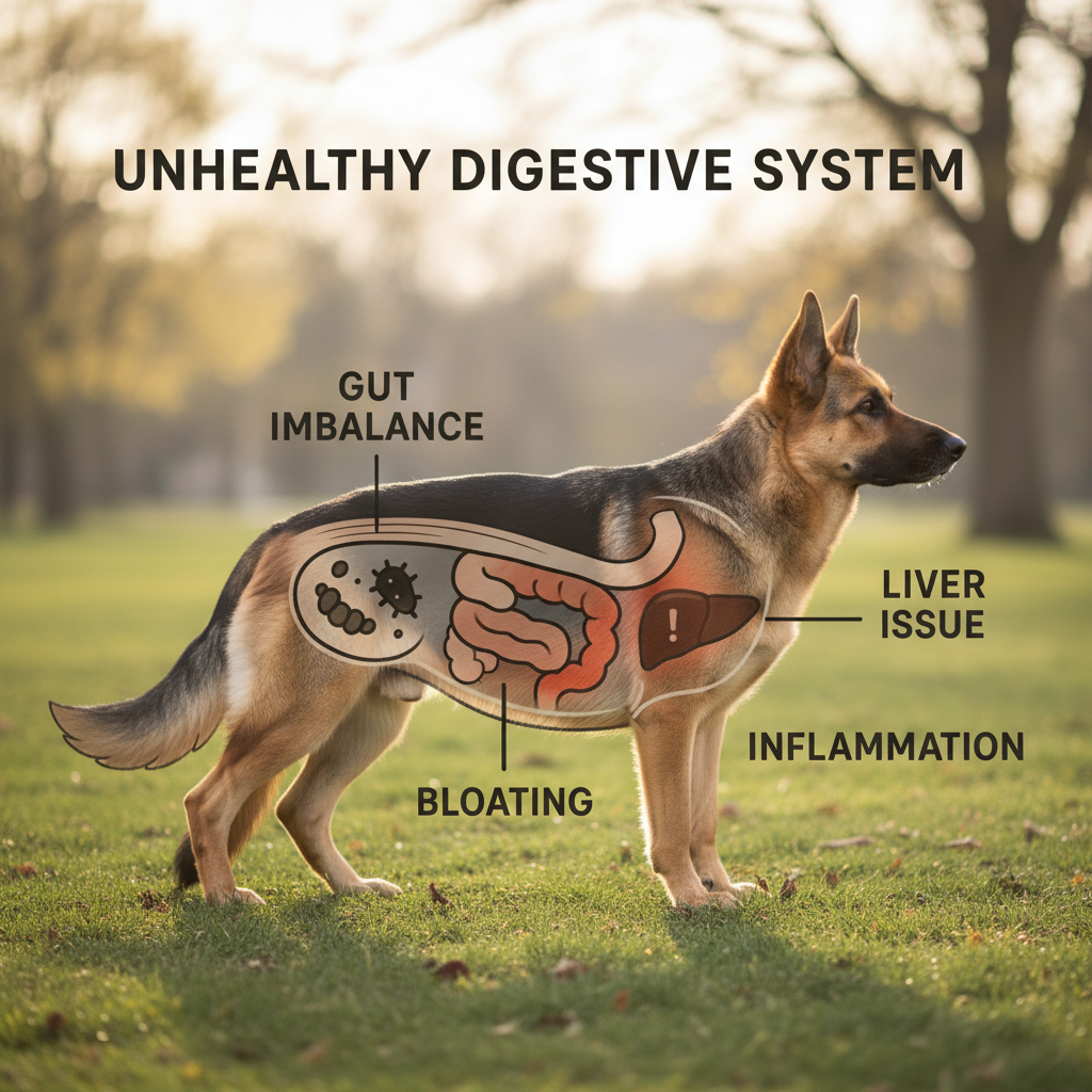 This toxic cascade puts tremendous strain on your dog's body. Over months and years, chronic inflammation from gut dysbiosis can lead to: